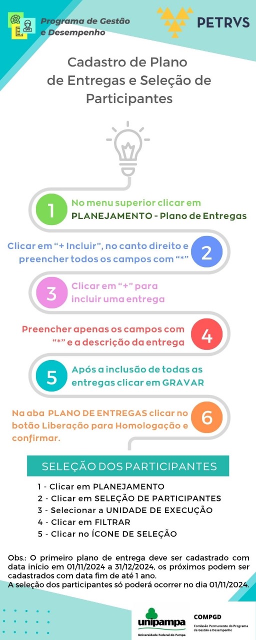 Cadastro de plano de entregas e seleção de participantes