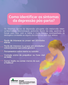 No Maio Furta-Cor, mês de conscientização da saúde mental materna, a Divisão de Atenção à Saúde e Segurança do Trabalho (DASST) traz informações para reflexão sobre condições que podem afetar a saúde materna no puerpério. Nesta campanha, daremos destaque a depressão pós-parto em mulheres, um tema considerado tabu na sociedade, mas de extrema relevância e sugerido pelos(as) servidores(as) em nossa “Pesquisa de Satisfação sobre as Campanhas de Saúde”, realizada em 2024.