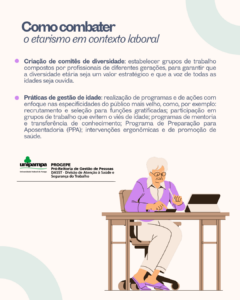 Esse fenômeno está presente e sorrateiramente invisível, afetando os(as) servidores(as) com idade igual ou superior a 60 anos, que se sentem discriminados(as) e pressionados(as) a deixar seus cargos para dar lugar aos mais jovens.