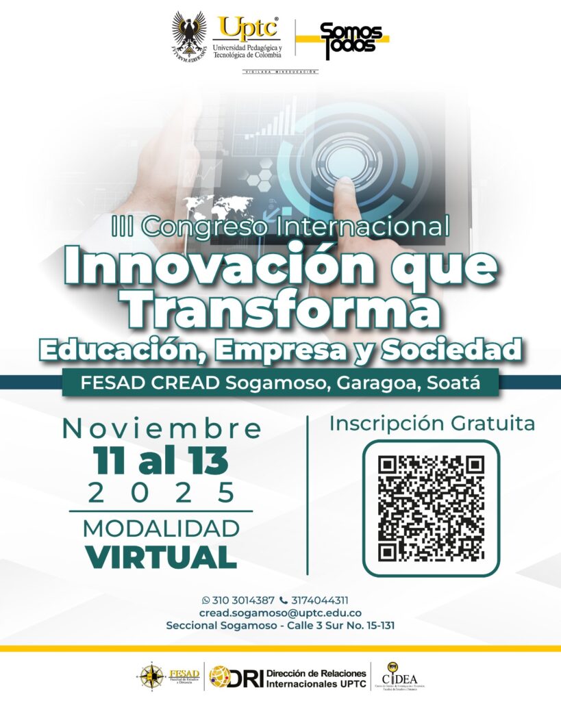 A Universidad Pedagógica y Tecnológica de Colombia convida a comunidade acadêmica da Unipampa a participar do III Congresso Internacional Inovação que Transforma: Educação, Empresa e Sociedade, um espaço inspirador onde diferentes setores se conectam para construir futuros mais sustentáveis, inclusivos e inovadores.
