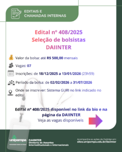 DAIINTER lança edital para estudantes de graduação concorrerem a vagas de bolsistas para atuarem no primeiro semestre de 2026.