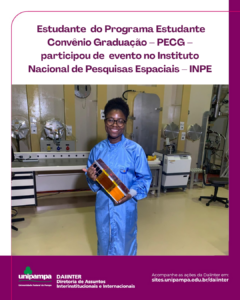 A discente do curso de Engenharia de Telecomunicações do campus Alegrete, Magdalena Mbuy Miko, proveniente da Guiné Equatorial, do Programa Estudante Convênio Garaduação – PECG – participou do evento CubeDesign, organizado pelo Instituto Nacional de Pesquisas Espaciais – INPE – em Campinas, onde faz estágio extracurricular. Magdalena Falou sobre a participação das mulheres nessa área de pesquisa.