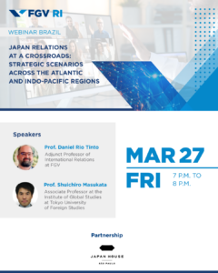O Consulado-Geral do Japão em São Paulo divulga o webinar “Brazil–Japan Relations at a Crossroads: Strategic Scenarios across the Atlantic and Indo-Pacific Regions”, promovido pela Fundação Getulio Vargas em parceria com a Japan House São Paulo.
