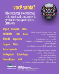 O Núcleo de Gestão de Idiomas da DAIINTER retoma, a partir de hoje, as atividades da Campanha do Multilinguismo, reafirmando a importância de cultivar uma universidade plural, aberta e conectada com o mundo. A ação segue comprometida com o aprendizado de línguas, a participação em atividades internacionais e o fortalecimento de uma cultura institucional que valoriza a comunicação intercultural.