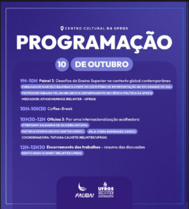 Nos dias seguintes, 15 a 17/10, a representante da Unipampa participou de plenárias, painéis e sessões discutindo temas centrais para a internacionalização das instituições de ensino superior das Américas. Além disso, a participação da Diretora da Daiinter também envolveu a apresentação da Unipampa aos representantes de outras instituições ao longo do evento, quando também foi realizadas reuniões de networking no estande do Brasil, organizado pela Faubai (Associação Brasileira de Educação Internacional), a qual a Unipampa é associada.