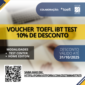 O Grupo de Cooperação Internacional de Universidades Brasileiras – GCUB, ao qual a Unipampa é associada,em parceria com a Educational Testing Service (ETS), concede nova oportunidade para solicitação de voucher com desconto de 10% para a realização do Exame TOEFL iBT. Esse desconto é exclusivo para professores(as), estudantes, técnicos(as) e pesquisadores(as) das universidades associadas ao GCUB.