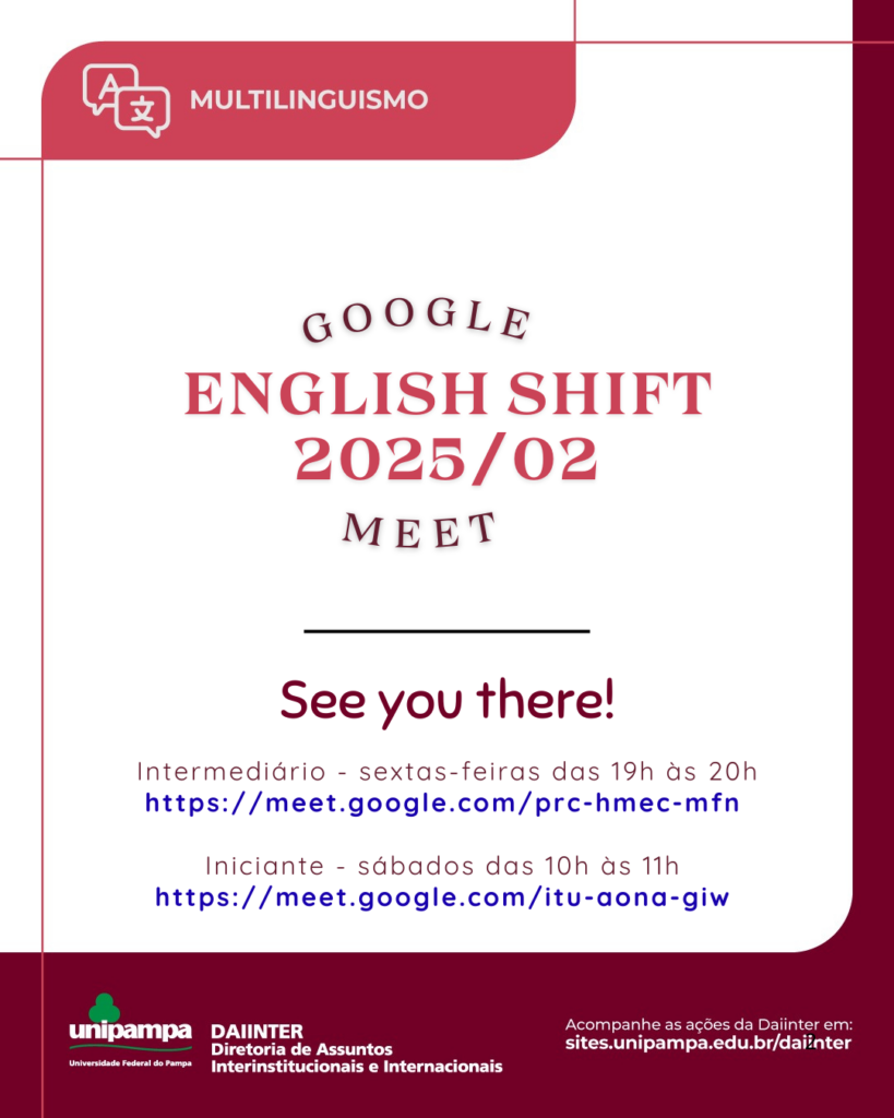 Dúvidas: pelo Direct do Instagram @nucleolinguas.