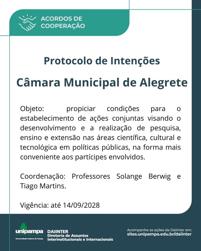 A partir de proposta do Campus Uruguaiana, a Unipampa firma o Acordo de Cooperação nº 10/2025 com a Universidade federal de Santa Maria (UFSM).