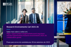 Estão abertas as inscrições para o edital Research Environment Grants 2025-26 do British Council, oportunidade para desenvolvimento de capacidades e atividades de colaboração entre instituições de ensino superior do Reino Unido e Brasil, com financiamento de até £40.000,00 por projeto.