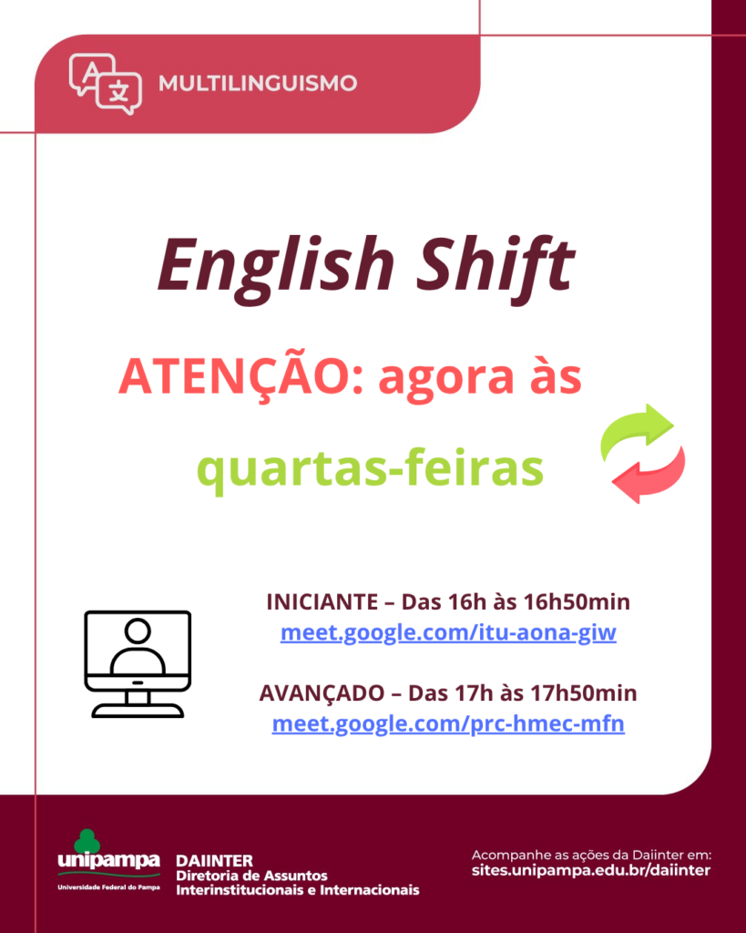 AVANÇADO – Quartas-feiras às 17h – Acesse a videochamada: https://meet.google.com/prc-hmec-mfn