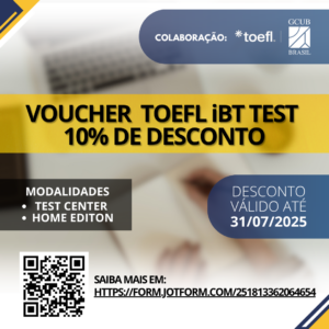 O Grupo de Cooperação Internacional de Universidades Brasileiras – GCUB , ao qual a Unipampa é associada, em parceria com a Educational Testing Service (ETS), concede nova oportunidade para solicitação de voucher com desconto de 10% para a realização do Exame TOEFL iBT. Esse desconto é exclusivo para professores(as), estudantes, técnicos(as) e pesquisadores(as) das universidades associadas ao GCUB.