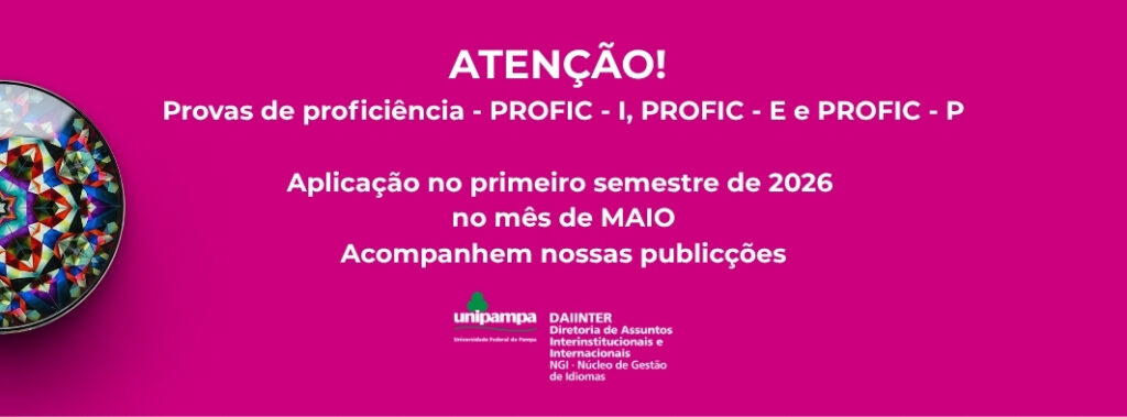 É a prova ON-LINE de Proficiência em Leitura em Língua Espanhola, Língua Inglesa e Língua Portuguesa para Estrangeiros e Surdos – PROFIC, ofertada pela Unipampa.