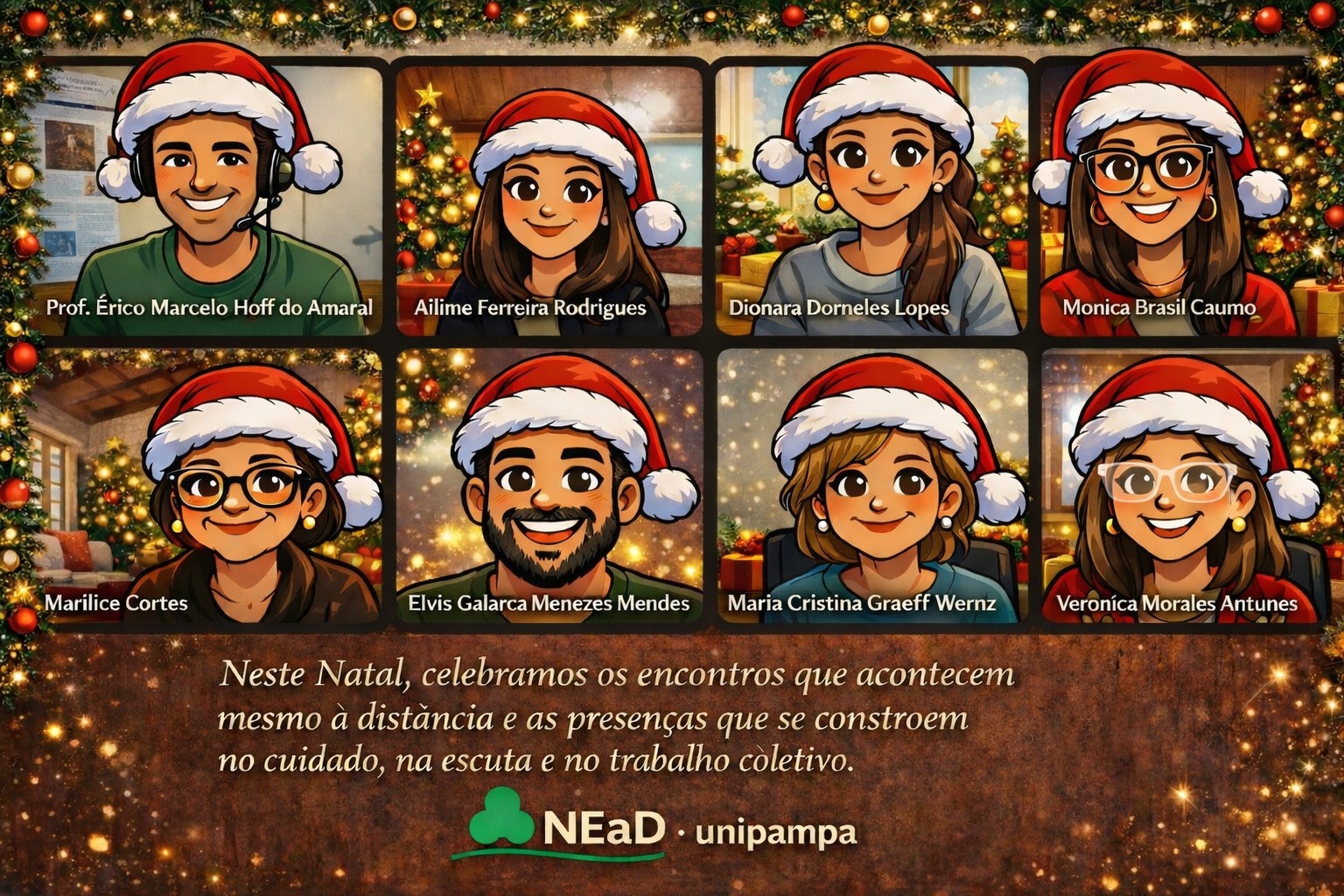 Desejamos que estes votos se estendam a cada servidor(a), a cada discente e a cada colaborador(a) da Unipampa, e também às suas famílias, levando paz, saúde, afeto e renovação para o novo ano que se aproxima.