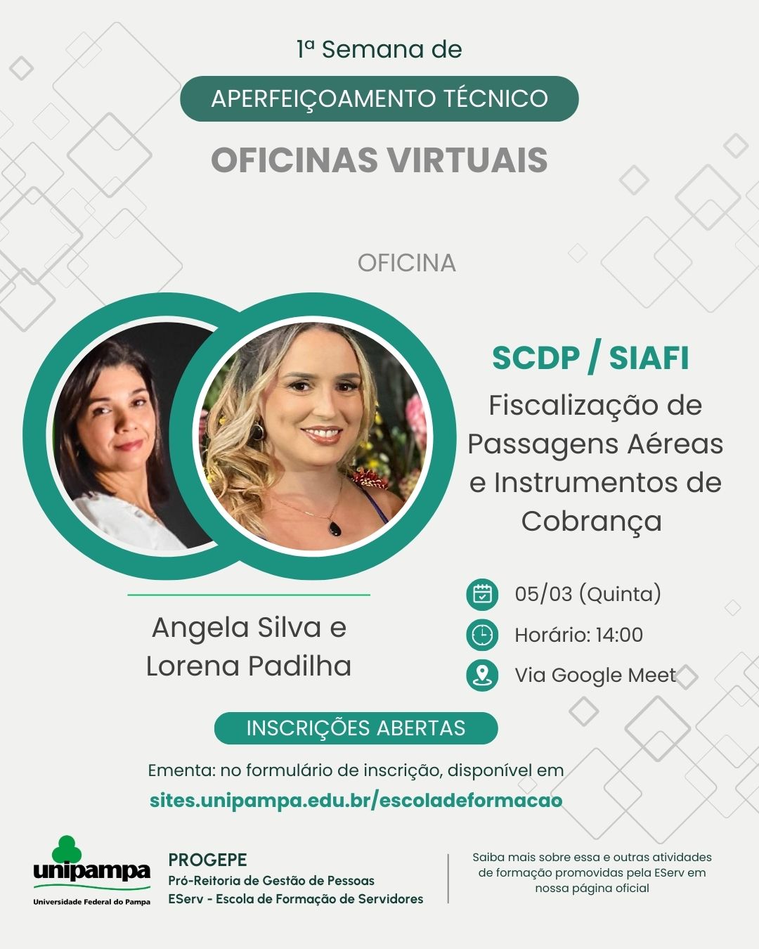 Capacitação prática que aborda a legislação vigente acerca da fiscalização em passagens aéreas e procedimentos operacionais no SCDP, no SEI, ContratosGOV e no SIAFI, como Ateste de faturas, análise de bilhetes e certidões, registro de instrumentos de cobrança, etapas de liquidação e pagamento, boas práticas e erros comuns, com demonstrações práticas e discussão de casos.