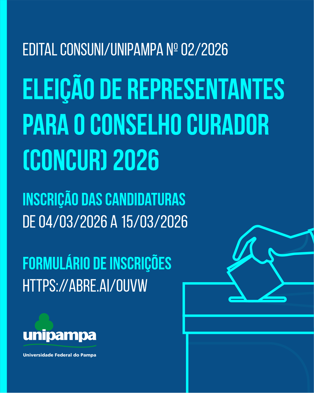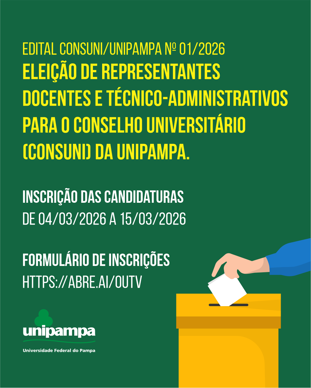 Eleição de representantes Docentes e Técnico-administrativos para o Conselho Universitário (CONSUNI) 2026 Data: 02/03/2026 até 30/04/2026 Horário: 08:00