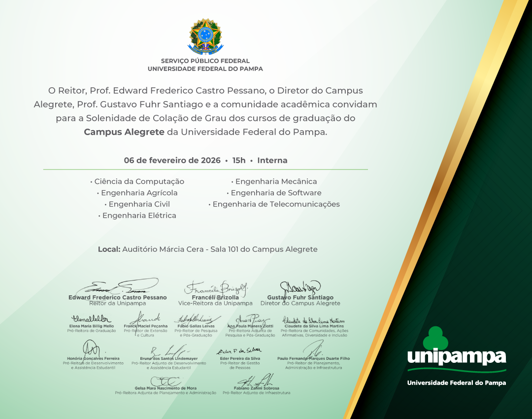 Convite solenidade Colação de Grau Interna – Campus Alegrete Data: 06/02/2026 Horário: das 15:00 às 16:00