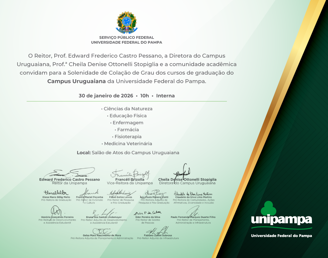 Convite solenidade Colação de Grau Interna – Campus Uruguaiana Data: 30/01/2026 Horário: das 10:00 às 11:00