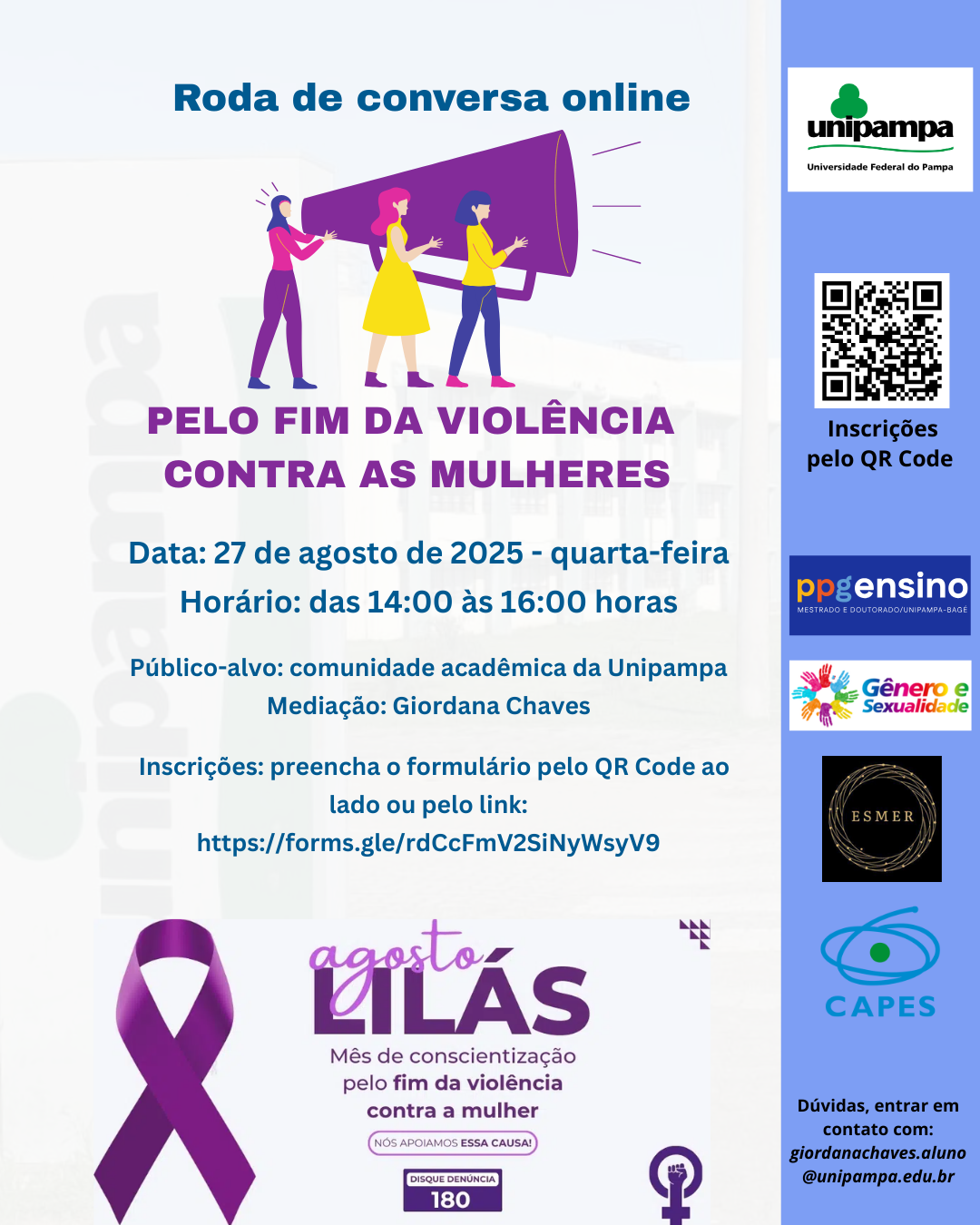 Roda de conversa online “Diversidade, Gênero e Sexualidade: O que a universidade tem a ver com isso? Data: 16/05/2025 Horário: das 14:00 às 16:00