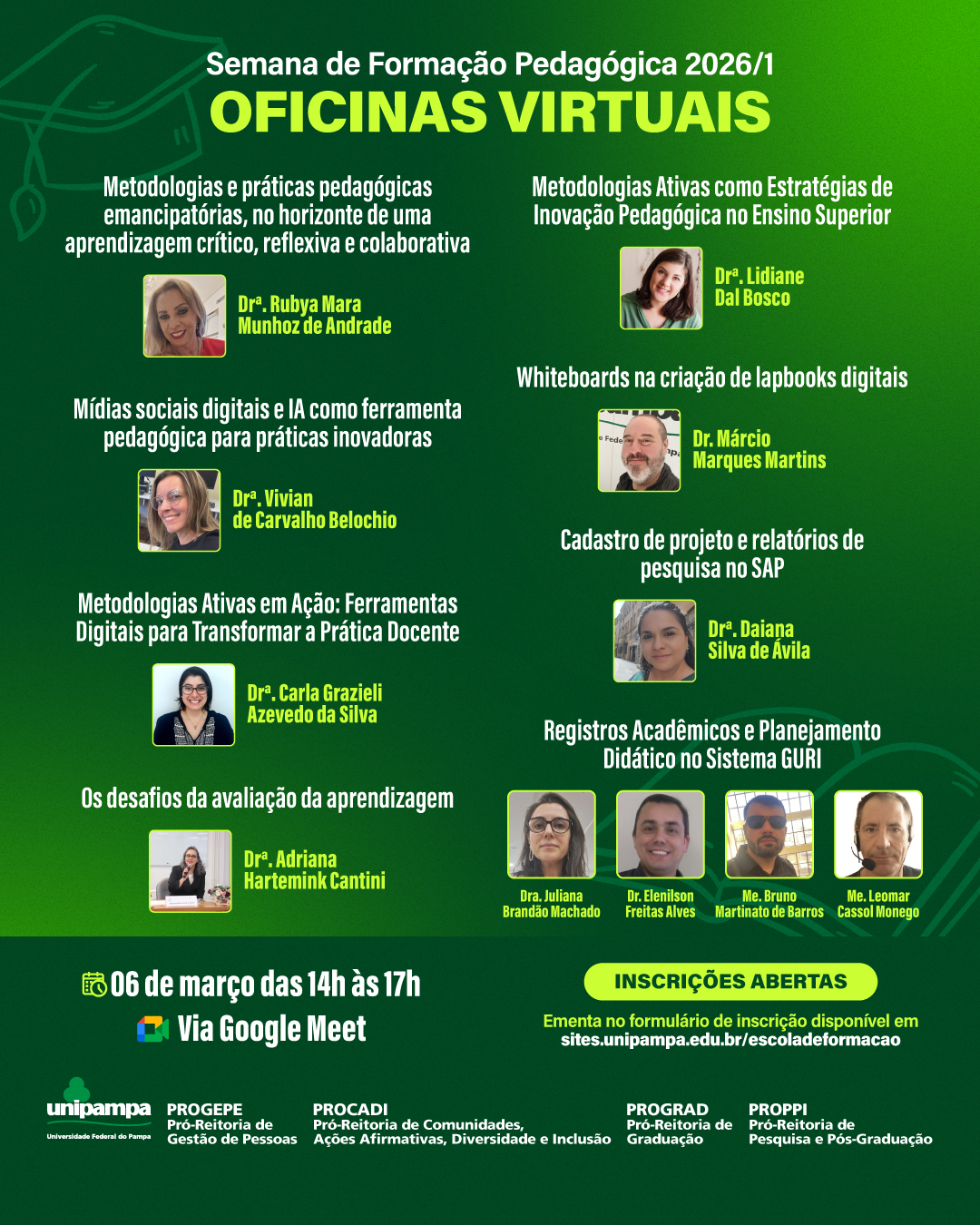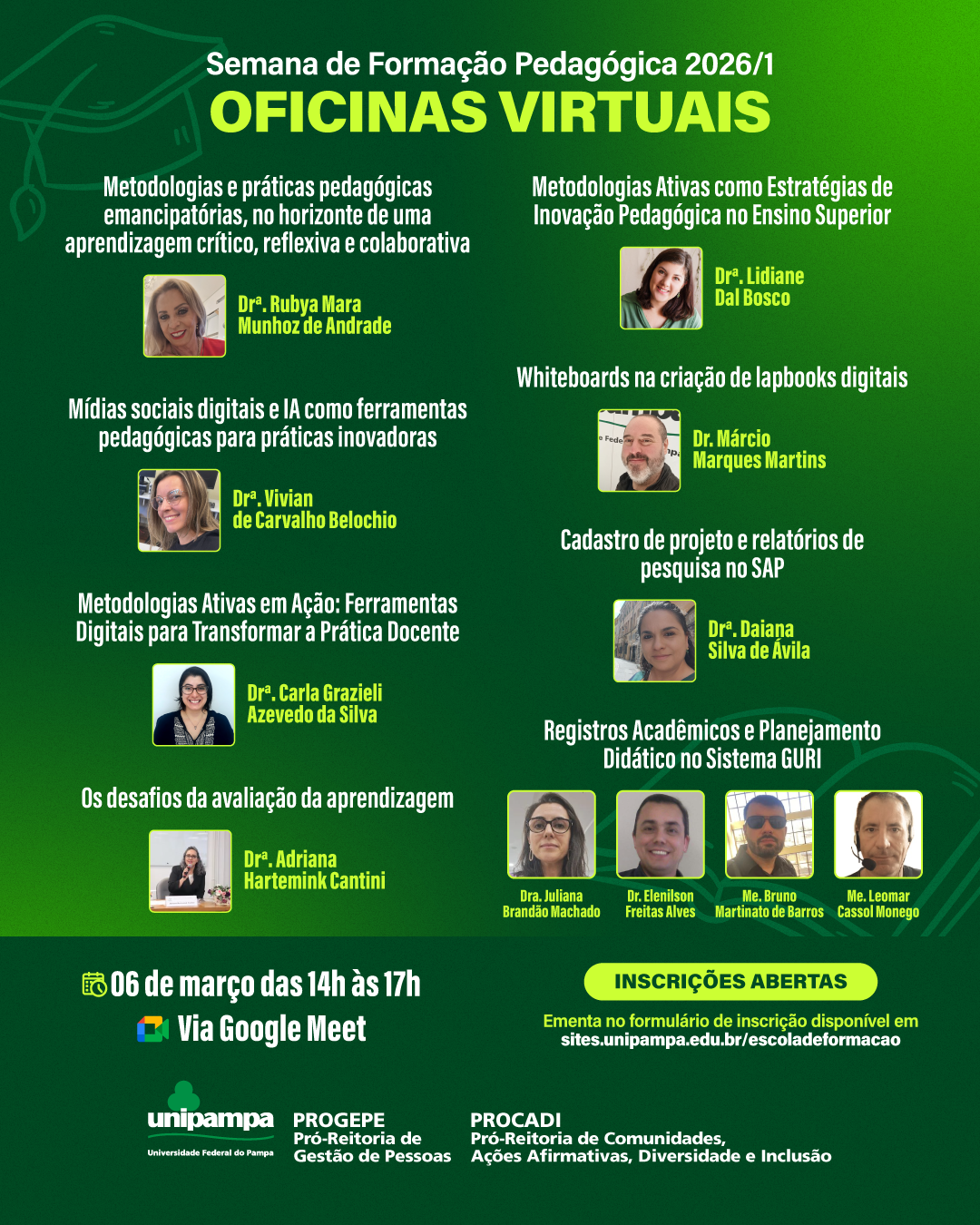 Endereço: Presencial no Campus Dom Pedrito e transmitido pelo canal da Pró-Reitoria de Gestão de Pessoas – UNIPAMPA –