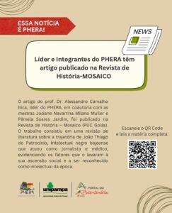 Artigo publicado na Revista História-MOSAICO, de autoria do Líder PHERA, Alessandro Carvalho Bica juntamente com suas mestras Josiane Navarrina Milano Muller e Pâmela Soares Jardim.