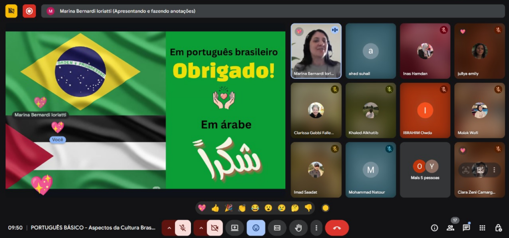 No último dia 22, as atividades do curso Português Básico – Aspectos da Cultura Brasileira foram finalizadas. O curso, que iniciou em 27 de maio e teve duração de 32h, contou com a presença de alunos palestinos em 2 encontros semanais na plataforma Google Meet, conduzidos por bolsistas do programa IsF da Unipampa e da Universidade Federal da Paraíba, supervisionadas por docentes de ambas as instituições.
