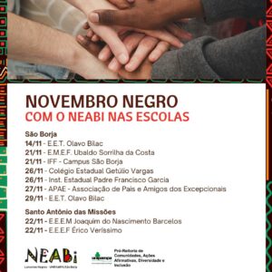 No Siepe de 2024, a oficina Educação Antirracista e Letramento Racial foi oferecida para professores(as) e alunos(as) da Unipampa. As temáticas discutidas na oficina partiram de pesquisa realizada com alunos(as) da Unipampa e de outras instituições que relataram em questionário on-line experiências vivênciadas no ambiente universitário.