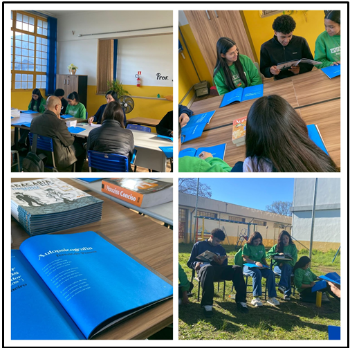 Conseguimos equacionar essas questões no evento realizado na Unipampa, campus Bagé, no dia 24/09/2025. Na ocasião, realizamos a exibição audiovisual do que chamamos de “Diferentes olhares sobre o 20 de setembro” e dedicamos a tarde para assistir trechos dos filmes “Netto perde sua alma”; “O tempo e o vento” e o documentário “Manifesto Porongos”. Ao final da sessão, realizamos um momento simbólico do Clube do Livro em homenagem à professora Zila (contando inclusive com sua presença), momento em que divulgamos que o Clube do Livro da EMEF João Severiano passará a se chamar Clube do Livro Professora Zila Leticia Goulart Pereira Rego.