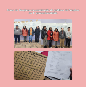 Durante a atividade, os bolsistas do PIBID, com o apoio da professora supervisora Nathália Batista, da Escola Estadual de Educação Básica Professor Justino Costa Quintana, desenvolveram uma proposta com as turmas de primeiro ano do Curso Normal. O objetivo foi trabalhar os conteúdos de Funções do 1º grau e Constante de forma mais concreta, utilizando o Geoplano como recurso didático. A iniciativa buscou estimular a criatividade e a curiosidade dos discentes, favorecendo uma aprendizagem mais significativa. Com o uso do Geoplano, os alunos puderam representar funções de maneira prática, identificar as raízes de uma função afim, realizar marcações com elásticos e esboçar o gráfico, que ao final revelava o desenho de uma estrela. A atividade também possibilitou que os estudantes expressassem, por meio de questionários, suas dificuldades e o interesse em participar de propostas semelhantes.