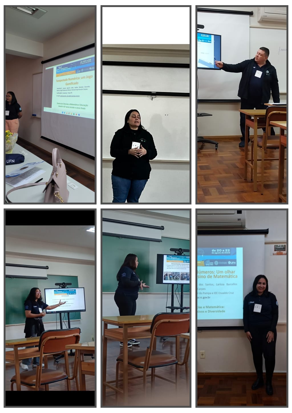 Entre os dias 21 e 22/08/2025 bolsistas de iniciação à docência, supervisores e a coordenadora de área do subprojeto Matemática Itaqui participaram do 2º Seminário Internacional de Ensino de Ciências e Matemática, promovido pela Universidade Franciscana (UFN), em Santa Maria (RS). No evento, também, foram apresentados 12 trabalhos de iniciação científica/relatos de experiência desenvolvidos no âmbito do Pibid. Parabéns a todos os bolsistas que demonstram a amplitude que o Pibid pode ter na formação de um professor, pois elaboramos, executamos, organizamos uma escrita científica e reflexiva das nossas práticas pedagógicas e as apresentamos em um evento de tal porte.