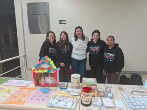 No dia 1 de outubro de 2025, às 19h, no saguão do prédio 1 da Unipampa Campus Jaguarão, o subprojeto Alfabetização/Pibid realizou a 1° Mostra de Jogos Pedagógicos. O objetivo do evento foi divulgar a produção didática dos bolsistas de iniciação à docência, os quais confeccionaram os jogos e estão utilizando-os em sua prática docente nas escolas. O foco na alfabetização é decorrência dos estudos realizados na área pelo grupo juntamente com as supervisoras das escolas e com a coordenadora de área, professora Patrícia Moura. O momento foi de compartilhar os saberes da docência alfabetizadora com os alunos de todos os cursos de graduação do Campus Jaguarão.