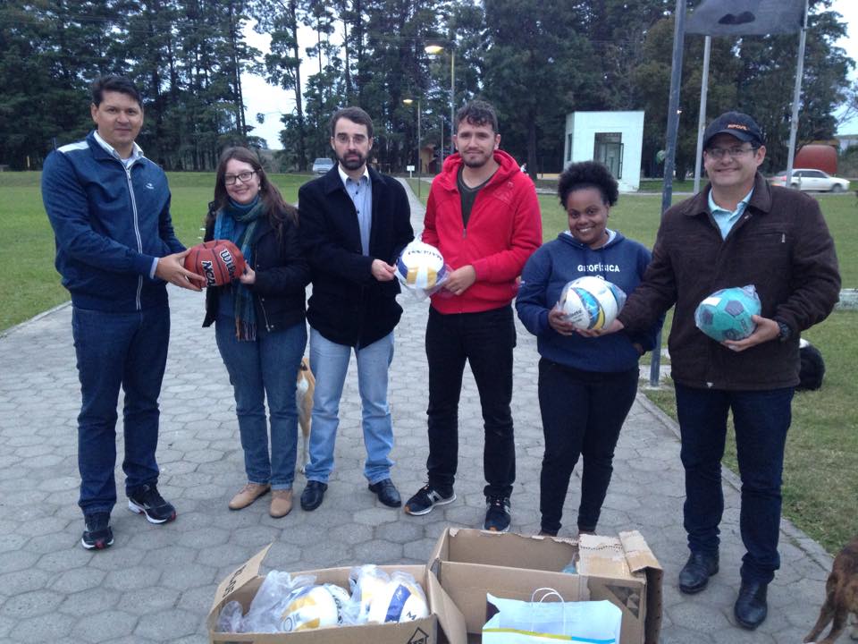 Na última quinta-feira, dia 26, foram entregues mais de 48 itens, dentre bolas, coletes, cones e outros equipamentos para a prática desportiva no campus Caçapava. O kit foi recebido pela coordenadora administrativa Carolina Marques e os estudantes Daianne Mangabeira e Stener Camargo. O vice-reitor Maurício Vieira e o pró-reitor Sandro Burgos também participaram do ato.