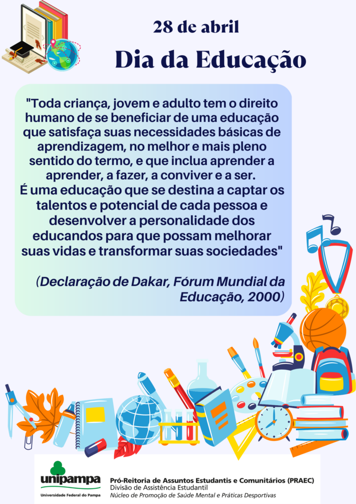 Esta data alude ao dia 28 de abril de 2000, quando foi assinado um compromisso internacional por líderes de 164 países, incluindo o Brasil, durante o Fórum Mundial de Educação, realizado em Dakar, no Senegal, a fim de garantir o desenvolvimento da educação no mundo.