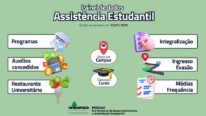 A Pró-Reitoria de Desenvolvimento e Assistência Estudantil (PRODAE) da Universidade Federal do Pampa (UNIPAMPA) lançou, no final de janeiro de 2025, o ‘Painel de Dados da Assistência Estudantil’. A ferramenta tem como objetivo fornecer informações detalhadas e transparentes sobre o impacto das ações de política estudantil nos discentes da universidade.