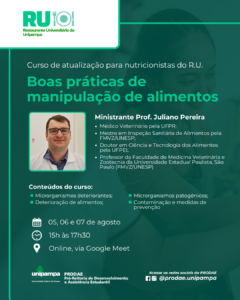 👨🏫 O curso será ministrado pelo Prof. Juliano Pereira (UNESP, Botucatu, SP), especialista em microbiologia e segurança de alimentos.