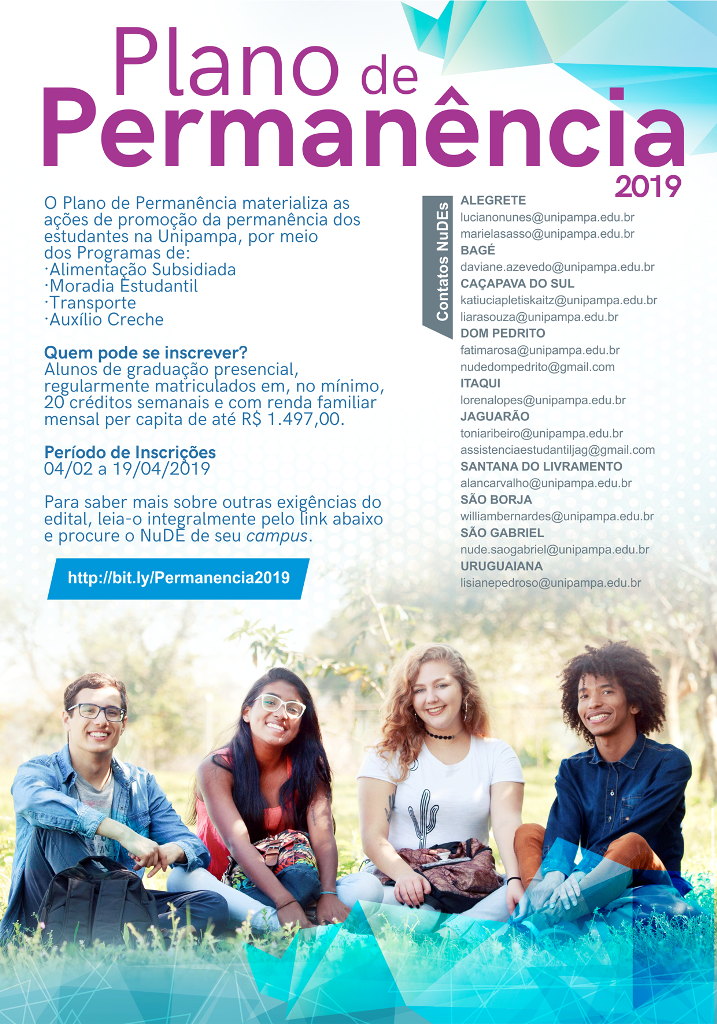 A PRAEC divulga o Edital Unipampa n.º 11/2019 – INSCRIÇÃO E SELEÇÃO DE CANDIDATOS AO PLANO DE PERMANÊNCIA: