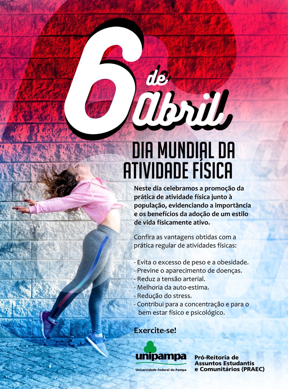 A Pró-Reitoria de Assuntos Estudantis e Comunitários (PRAEC) teve o apoio de representantes da Secretaria Municipal de Saúde de Bagé (acadêmicas do curso de enfermagem da URCAMP) e do NuDE Esporte, Cultura e Arte do campus da UNIPAMPA.