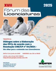 No dia 12 de junho ocorre o Forlic 2025, de forma virtual, com a temática: Diálogos sobre a Elaboração dos PPCs de acordo com a Resolução CNE/CP n.º 04/2024 – Um olhar para a extensão nas Licenciaturas
