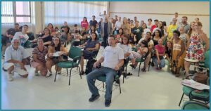 Durante a programação da manhã, a turma — composta por aproximadamente 50 estudantes — participou de uma apresentação institucional da Universidade, seguida de falas das Pró-Reitorias sobre suas atribuições e áreas de atuação. A Pró-Reitoria de Graduação (Prograd) esteve presente na atividade, integrando o momento de diálogo e contribuindo para a apresentação das políticas e ações voltadas ao ensino de graduação.