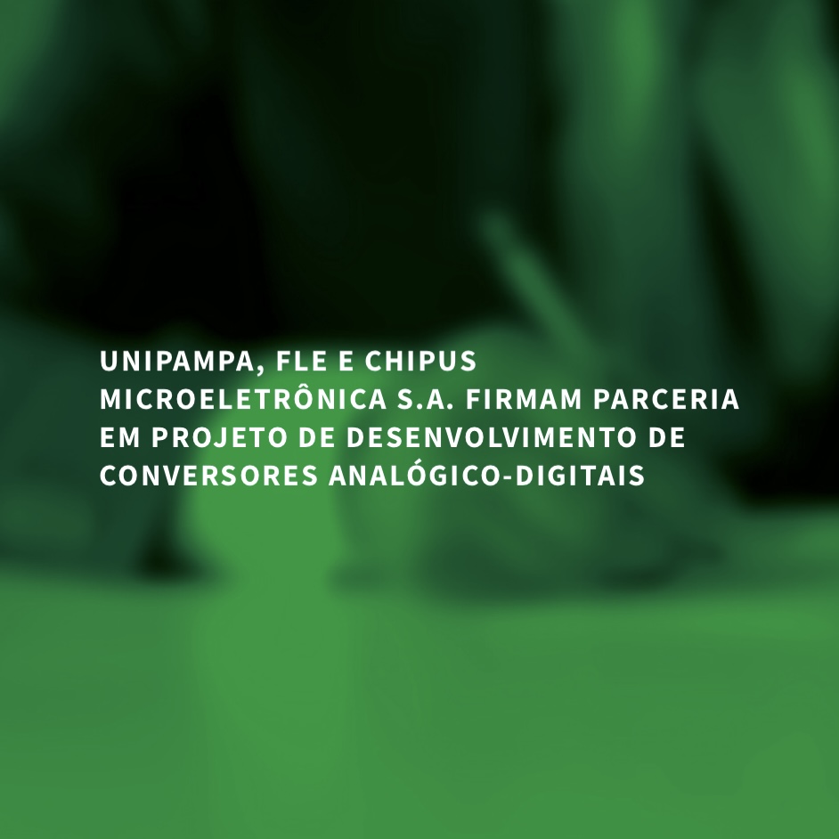 A Universidade Federal do Pampa (Unipampa), em colaboração com a Fundação Luiz Englert (FLE) e com a Chipus Microeletrônica S.A. celebrou o Acordo de Parceria para Pesquisa, Desenvolvimento e Inovação (PD&I) – 03/2025 intitulado “Estudo e desenvolvimento de ADCs de alta velocidade em tecnologia CMOS”.