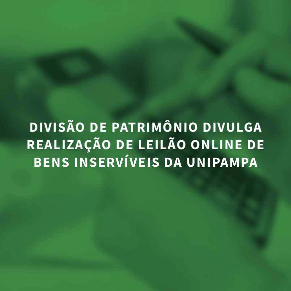 A Divisão de Patrimônio (DPAT) da PROPLADI informa que o leilão realizado no dia 9 de setembro foi um grande sucesso, arrecadando mais de R$ 140.000,00 para a Unipampa. Esse foi o terceiro leilão organizado pela Divisão de Patrimônio e tem o objetivo de otimizar a gestão dos bens permanentes que estão inservíveis, obsoletos ou antieconômicos para a Instituição.